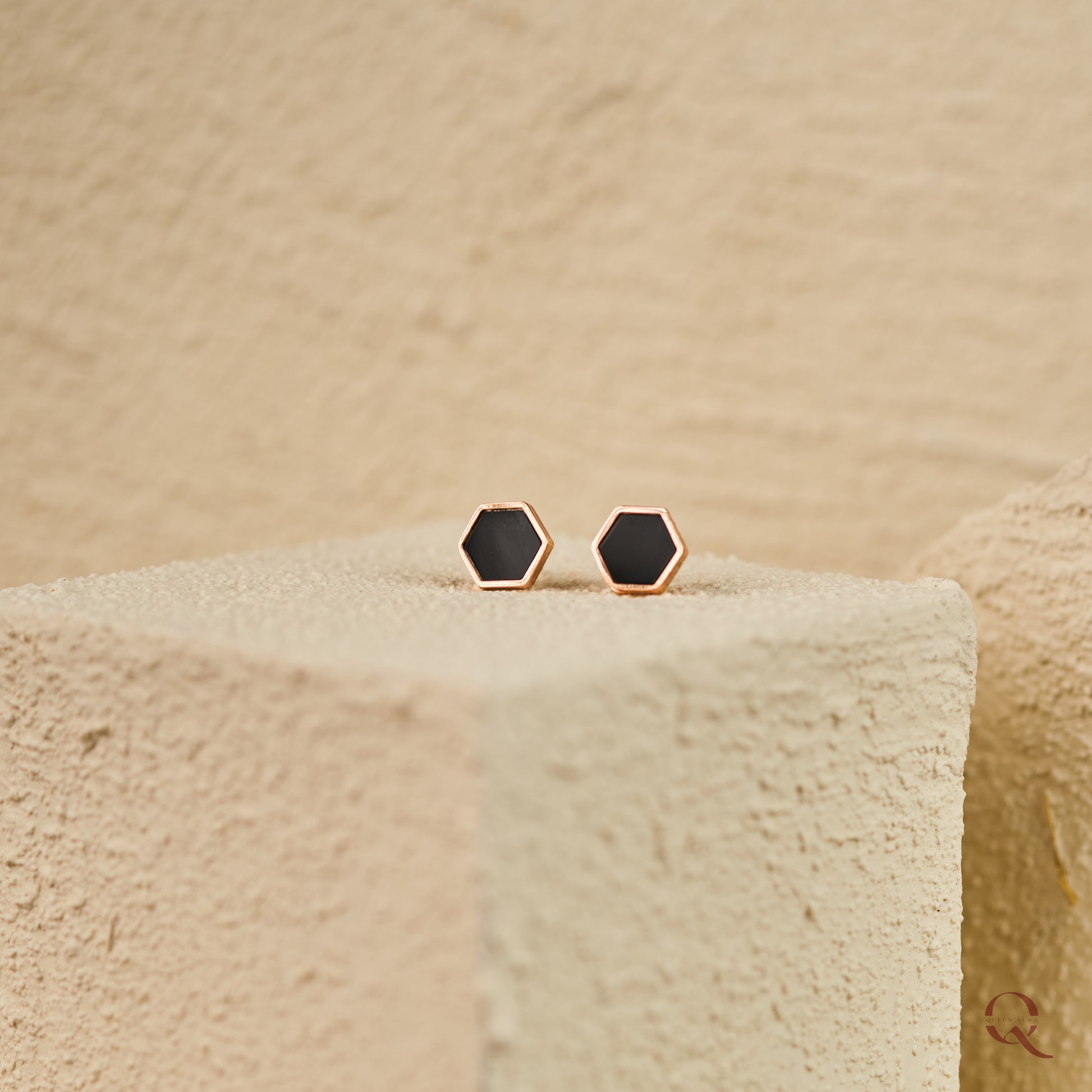 Add a touch of edgy charm with these black hexagon stud earrings. Designed to resist tarnish, they keep their sleek, modern look no matter where your day takes you. Perfect for adding a subtle yet stylish twist to any outfit!