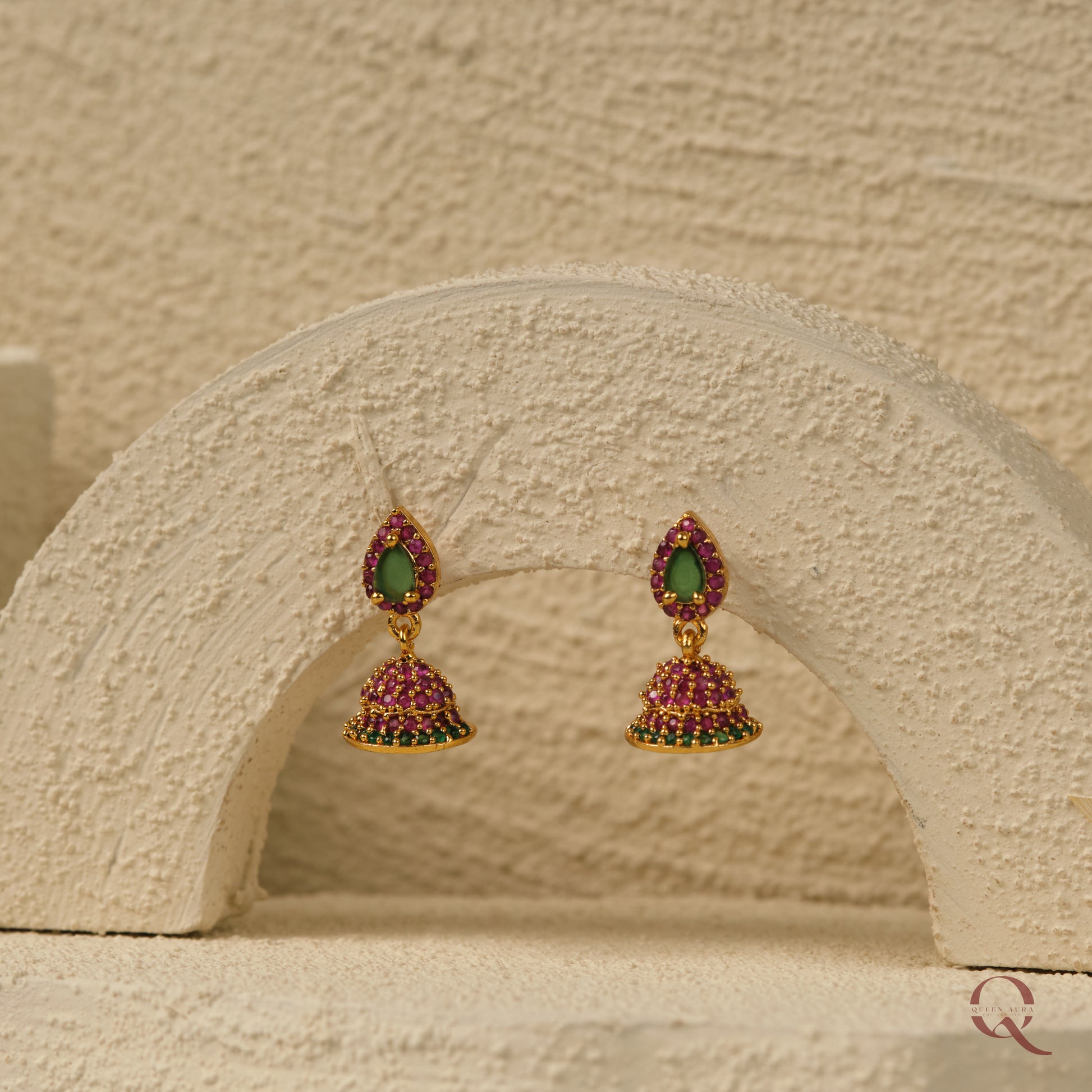 This Multicolour Jhumka features a compact design that combines vibrant colours with traditional craftsmanship. Its small size makes it an elegant choice for both everyday wear and special occasions, adding a subtle yet striking accent to your ensemble.