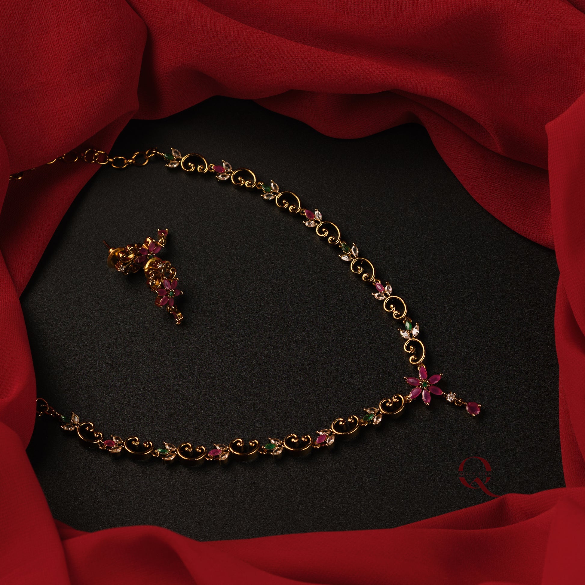 This Simple Antique Necklace features a timeless design adorned with multiple stones, making it an elegant accessory for traditional outfits. Its classic style complements cultural attire effortlessly, adding a subtle yet refined touch to your ensemble.